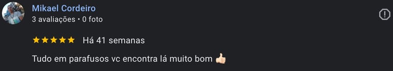 Somos uma loja com grande variedade de parafusos, porcas, arruelas, buchas, chumbadores e ferragens em geral, com soluções ideais para obras, reformas, manutenção e uso industrial.